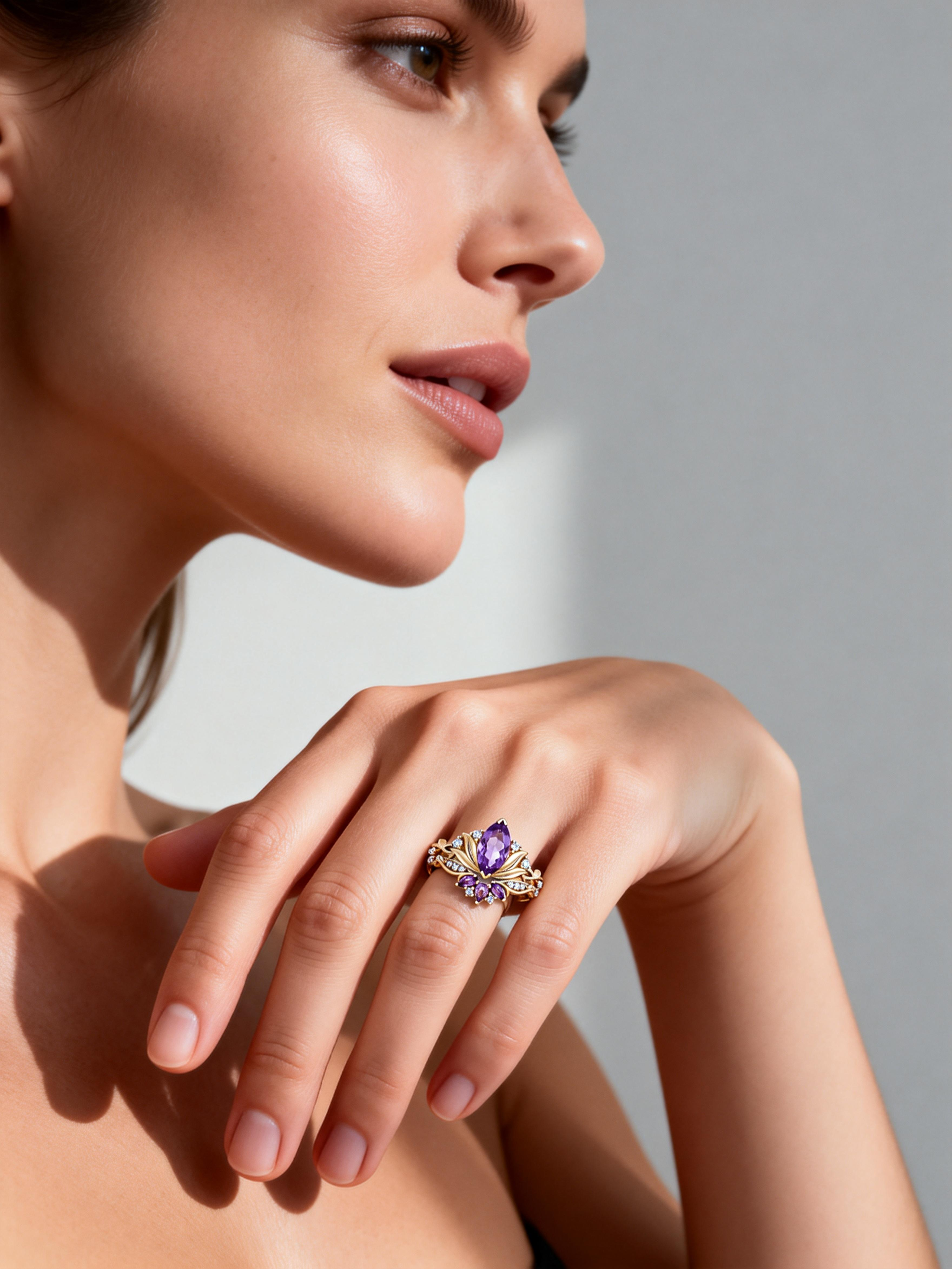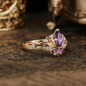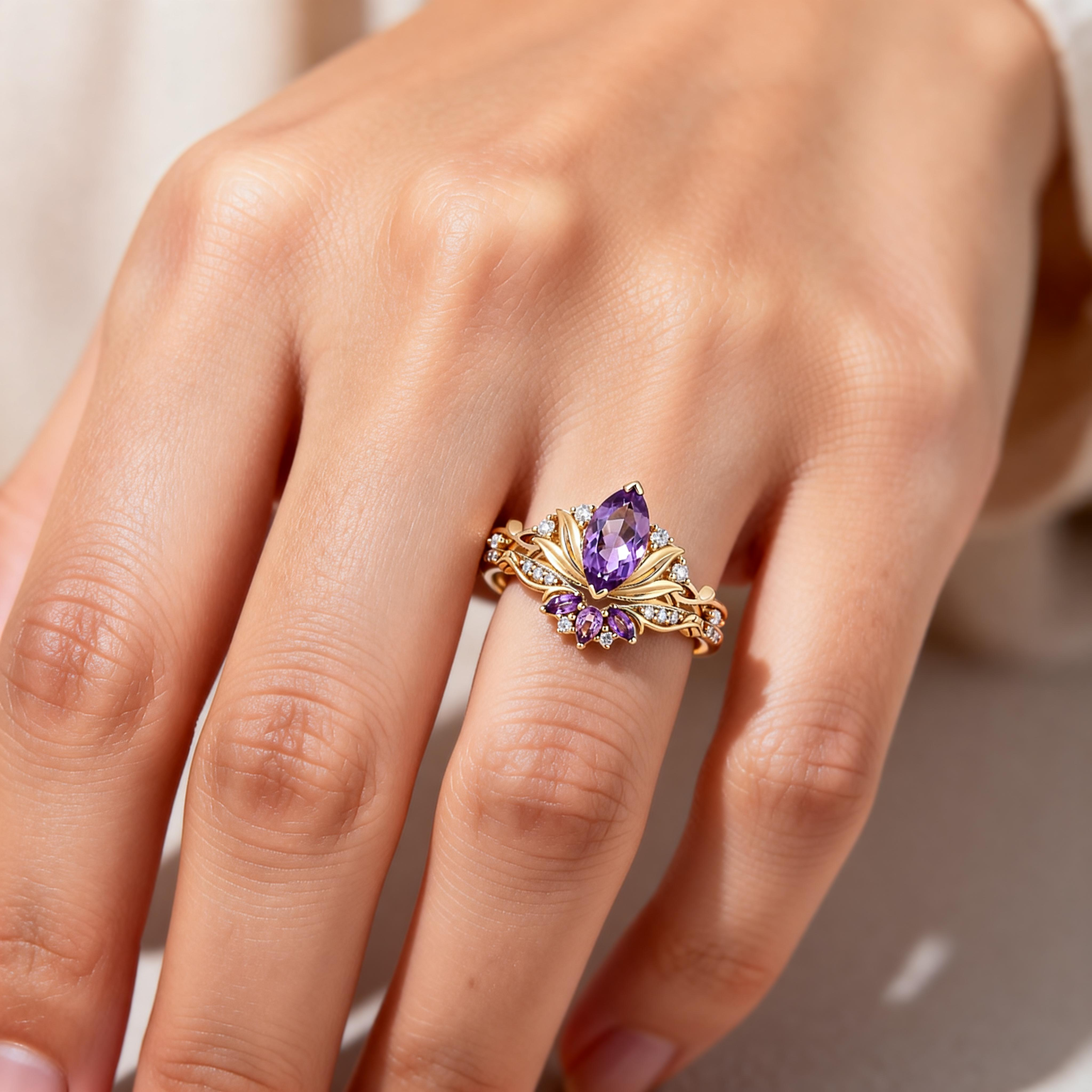 Floral Inspired | Amethyst Water Lily Engagement Ring Set