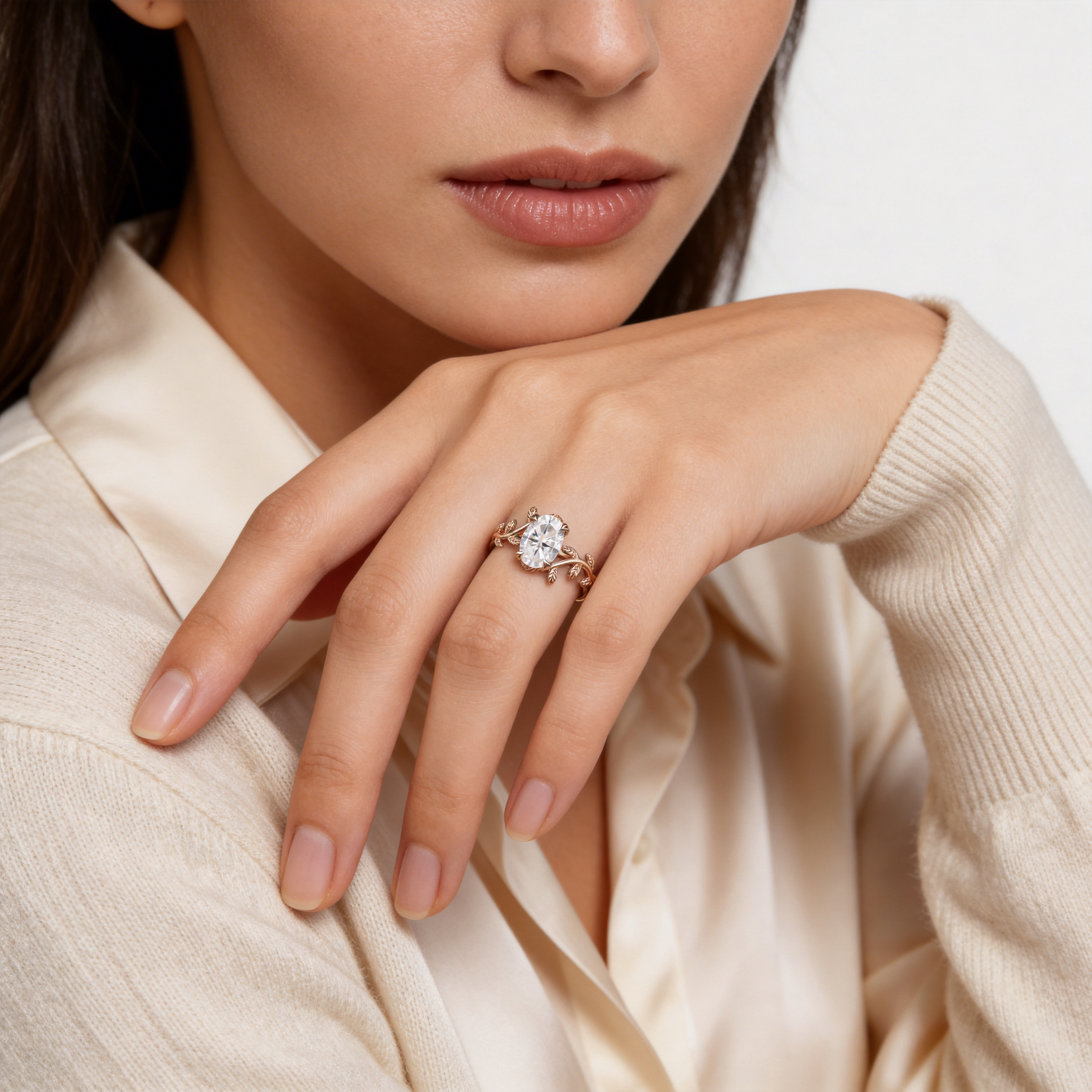 Nartyajewelry | 1.5ct Oval Cut Moissanite Leaf Engagement Ring