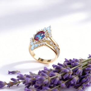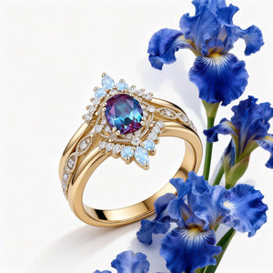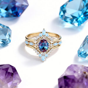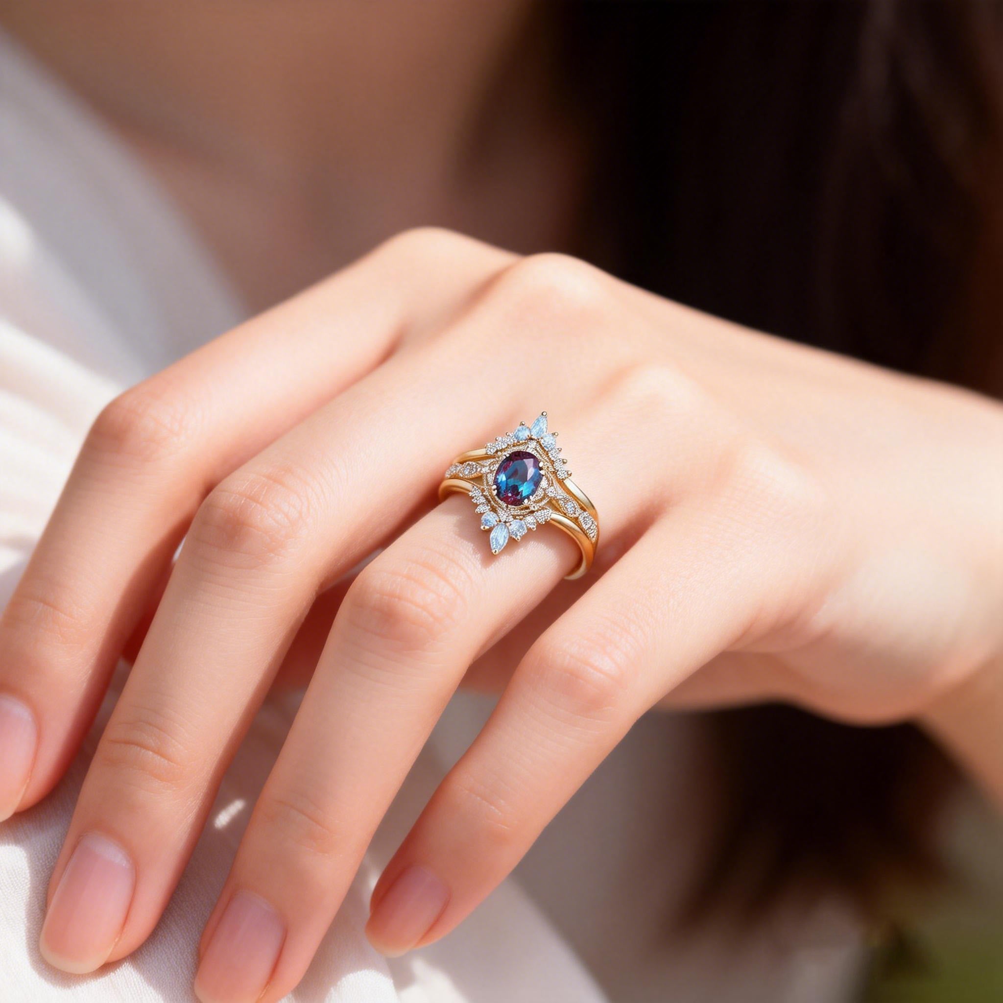 1.5CT Alexandrite Signature Vintage Luna Ring Set 3pcs