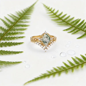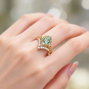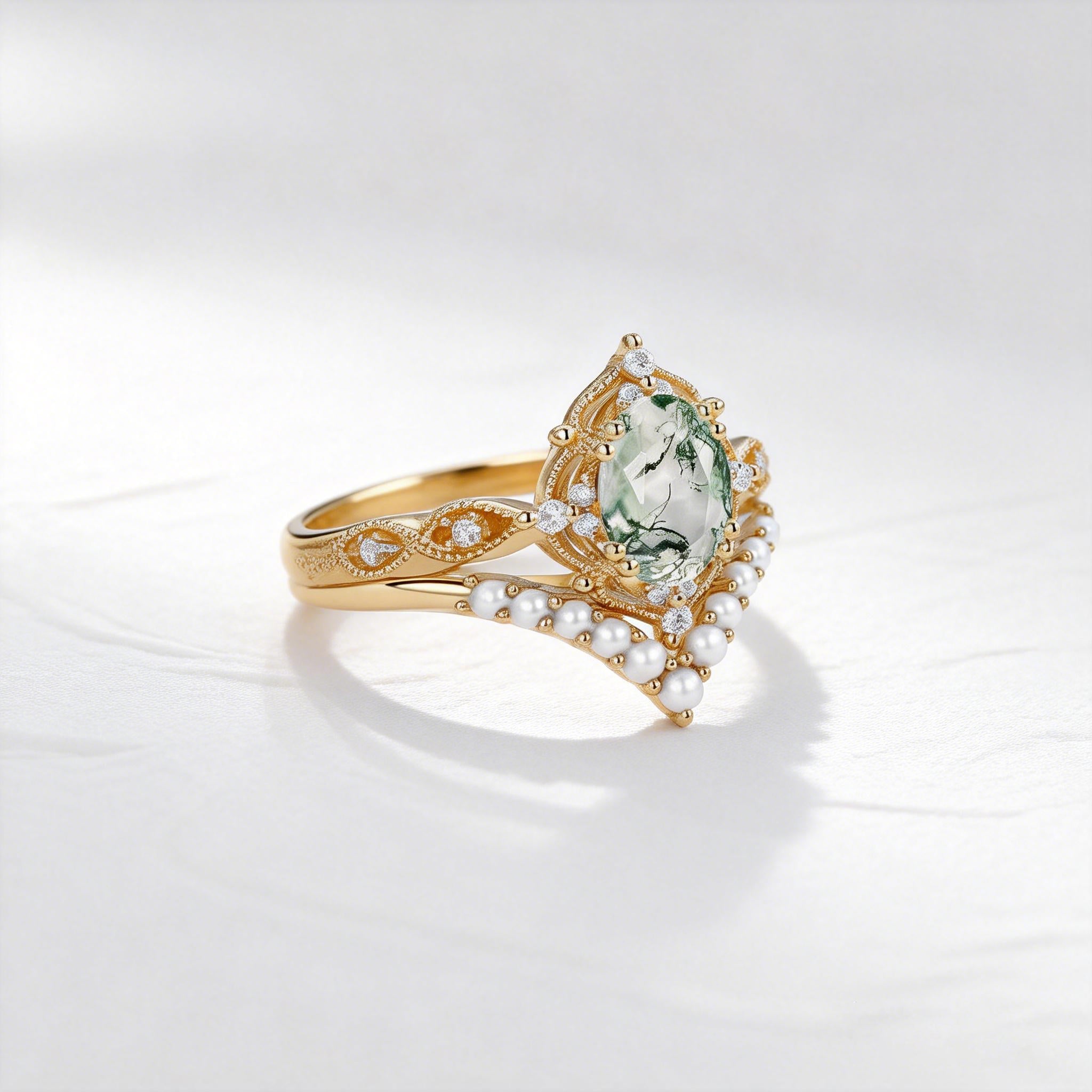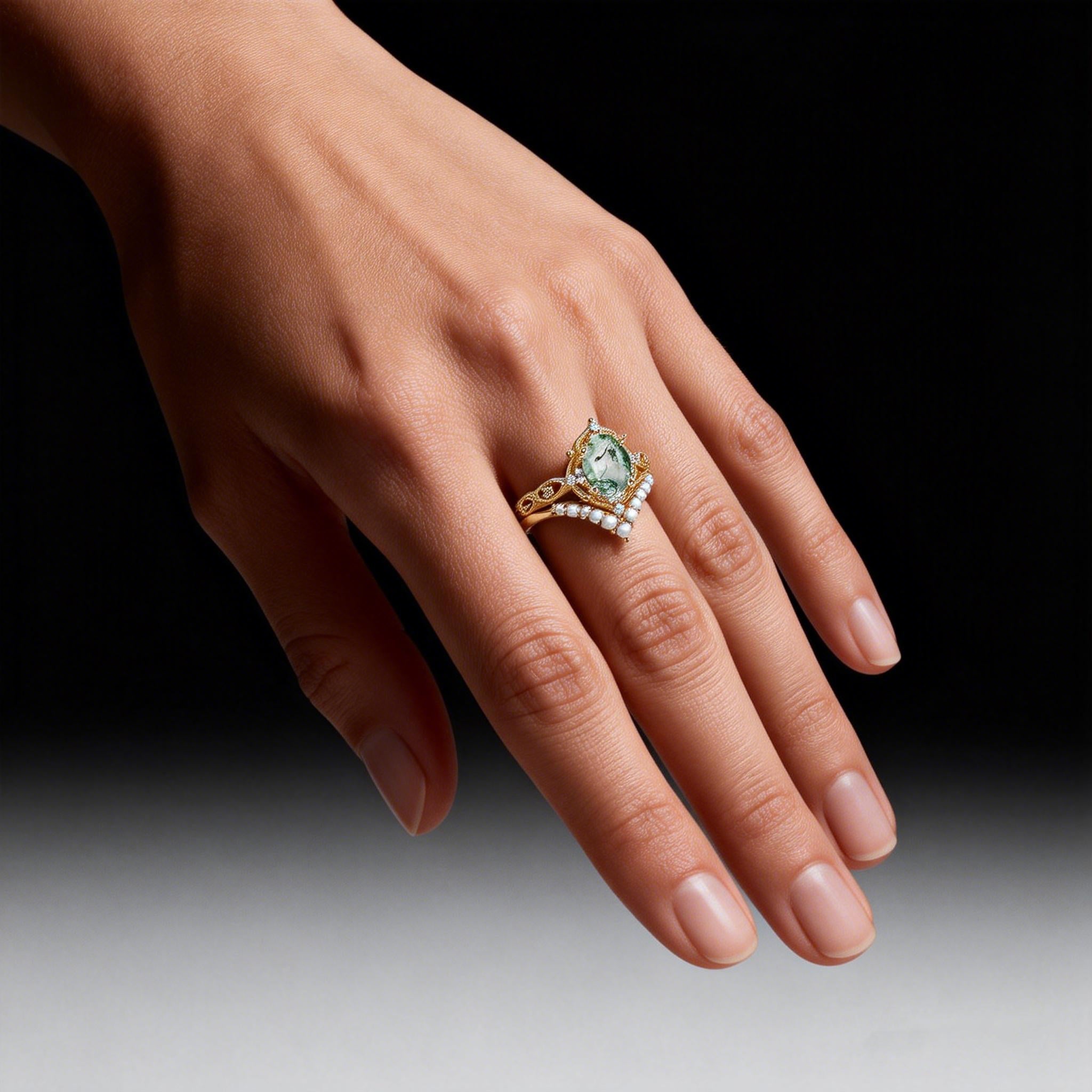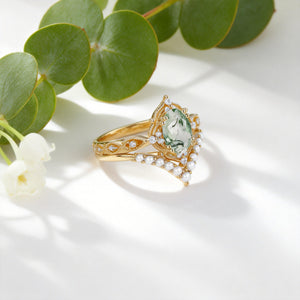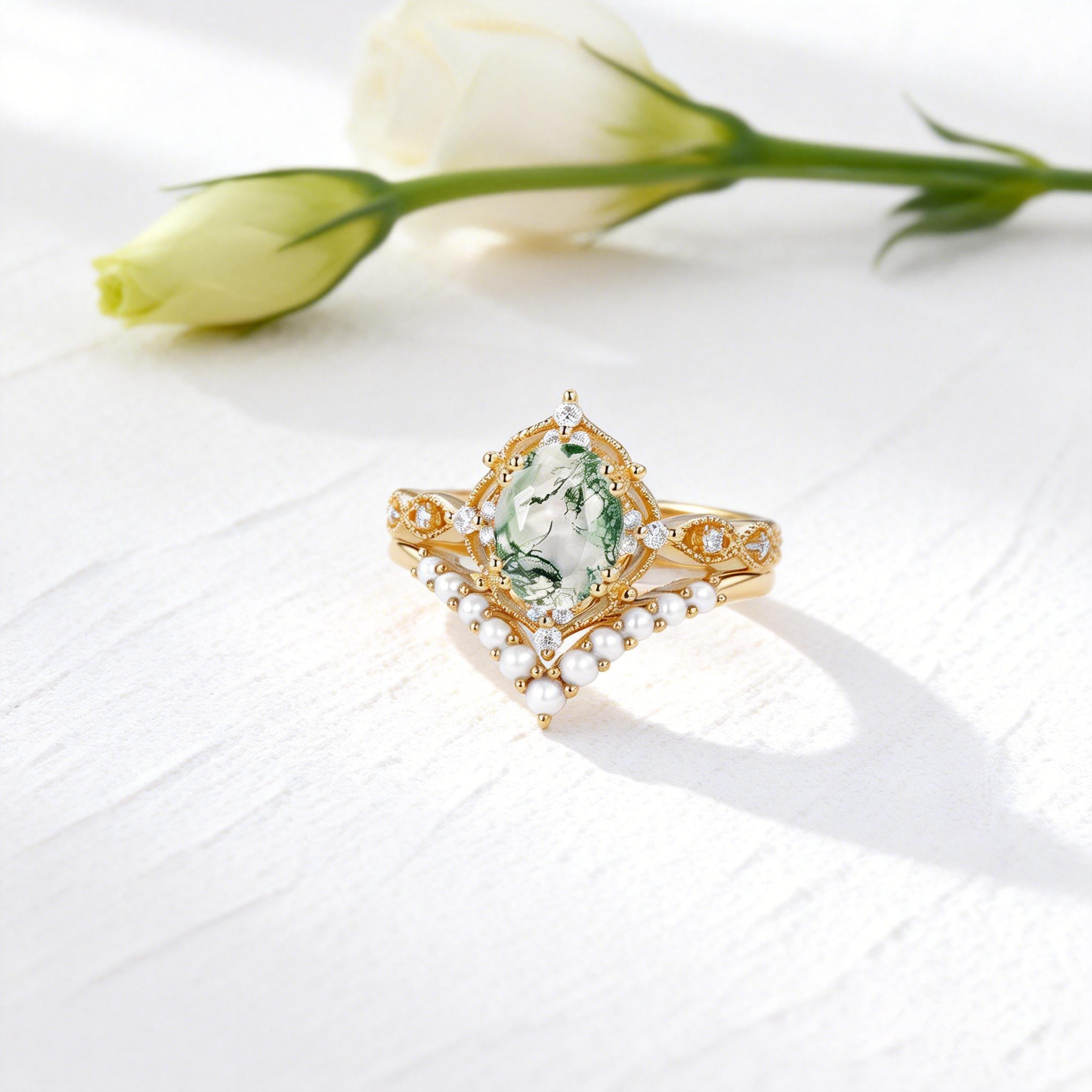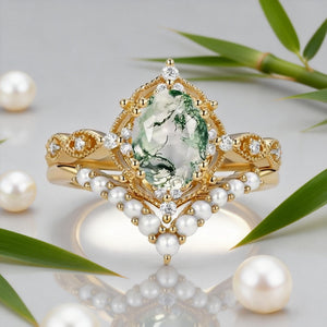 Charlotte 1.5ct Signature Moss Agate Vintage Ring Set 2pcs