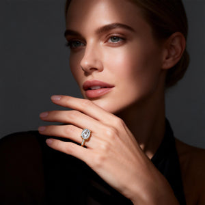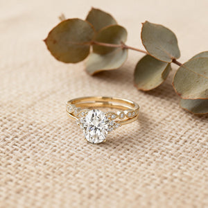 Vintage 2.0CT Oval Cut Moissanite Cluster Ring Set 2pcs