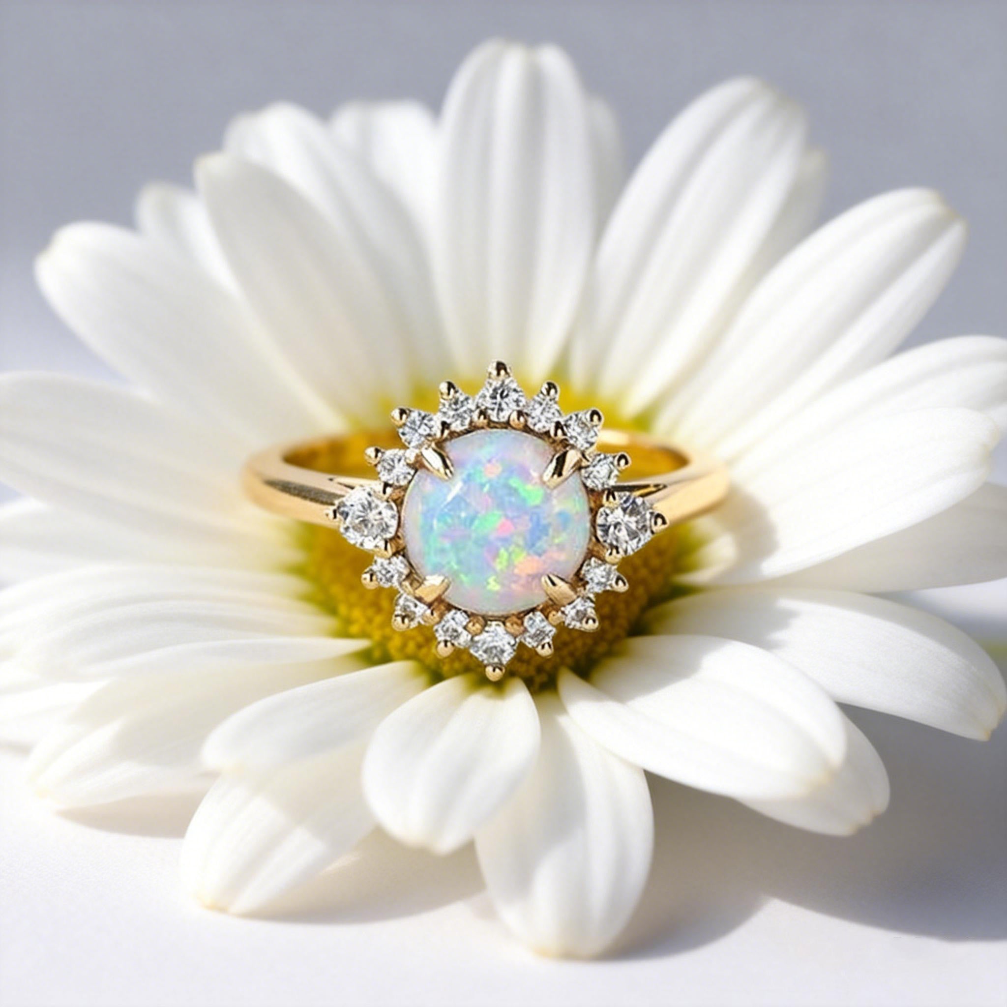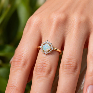 Sunflower Opal & Moissanite Rose Gold Ring
