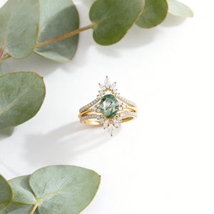 Tessa Unique Kite Cut GreenMoss Agate Chevron Engagement Ring Set 3pcs